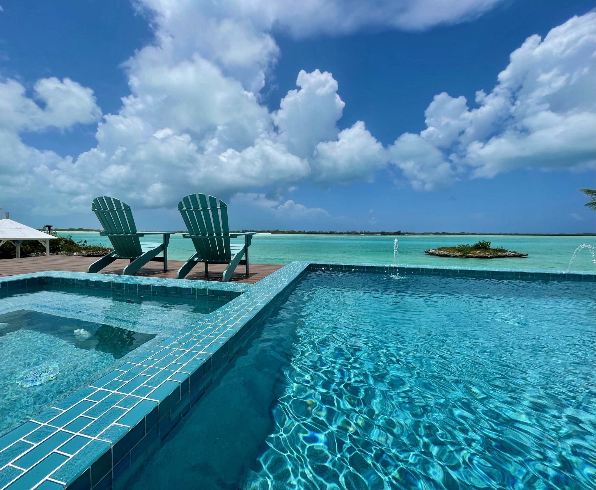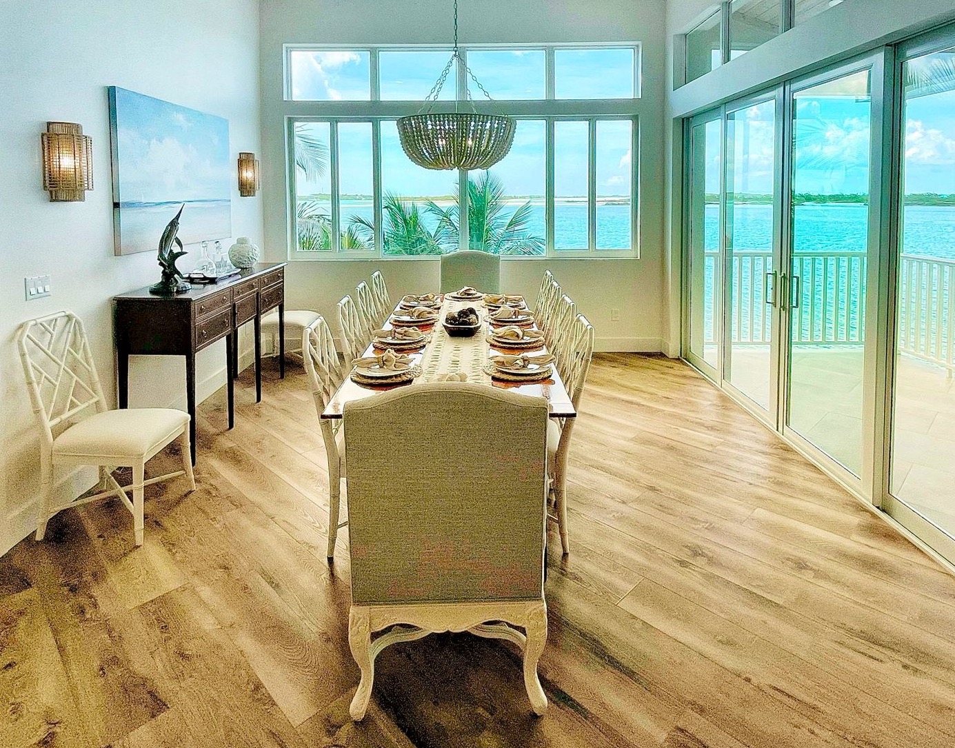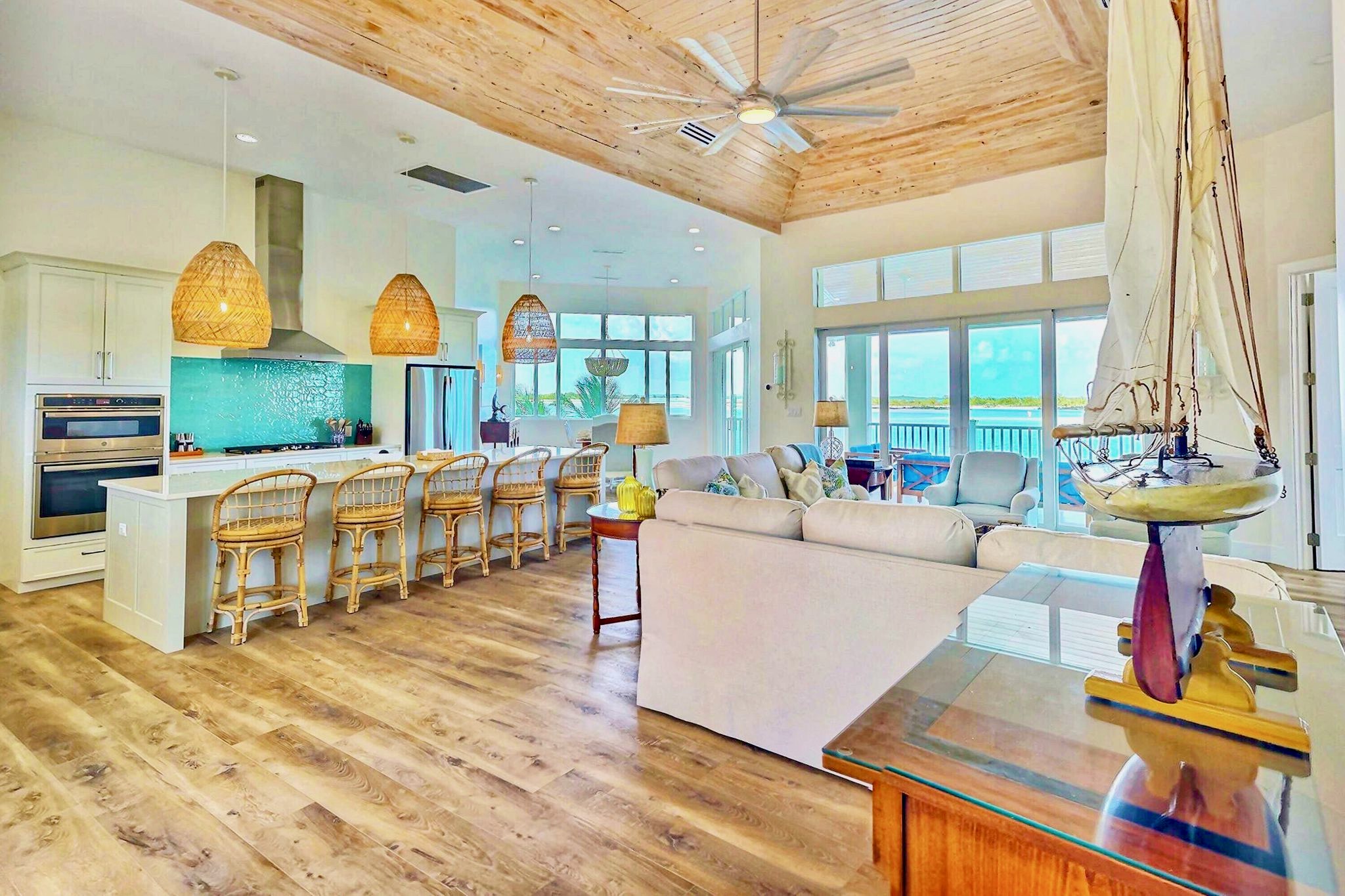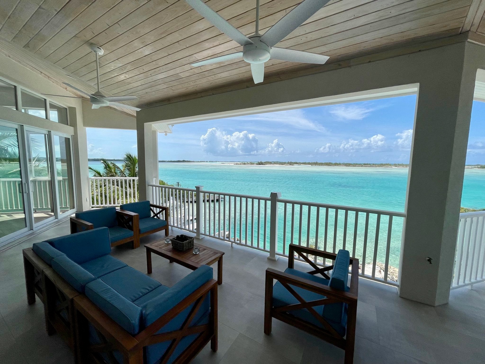 This luxury home offers beautiful views of Moriah Harbour Cay National Park.