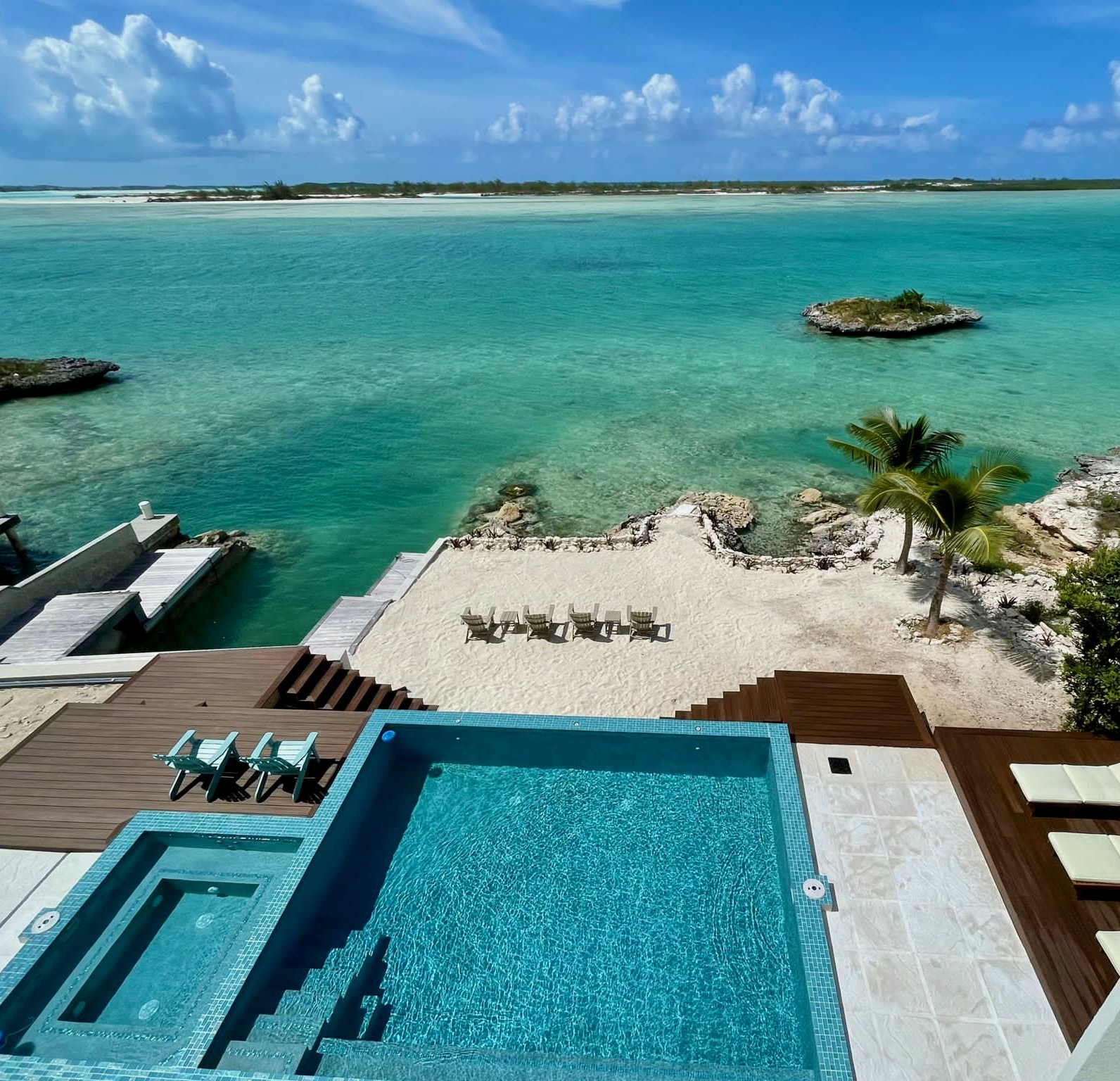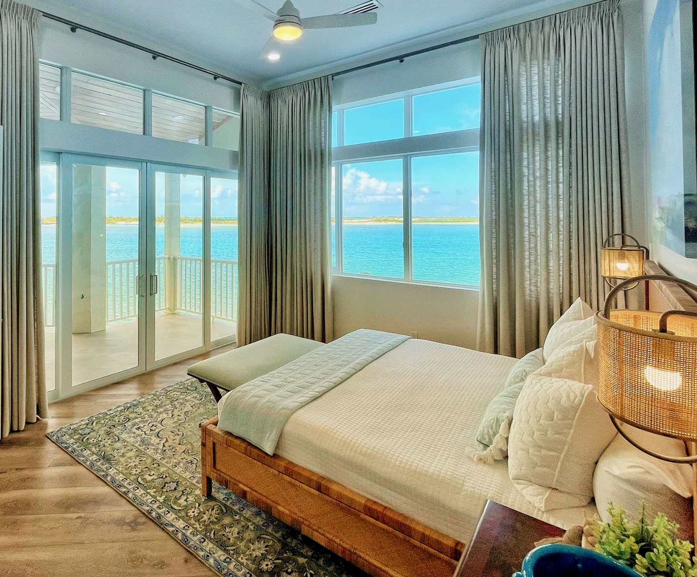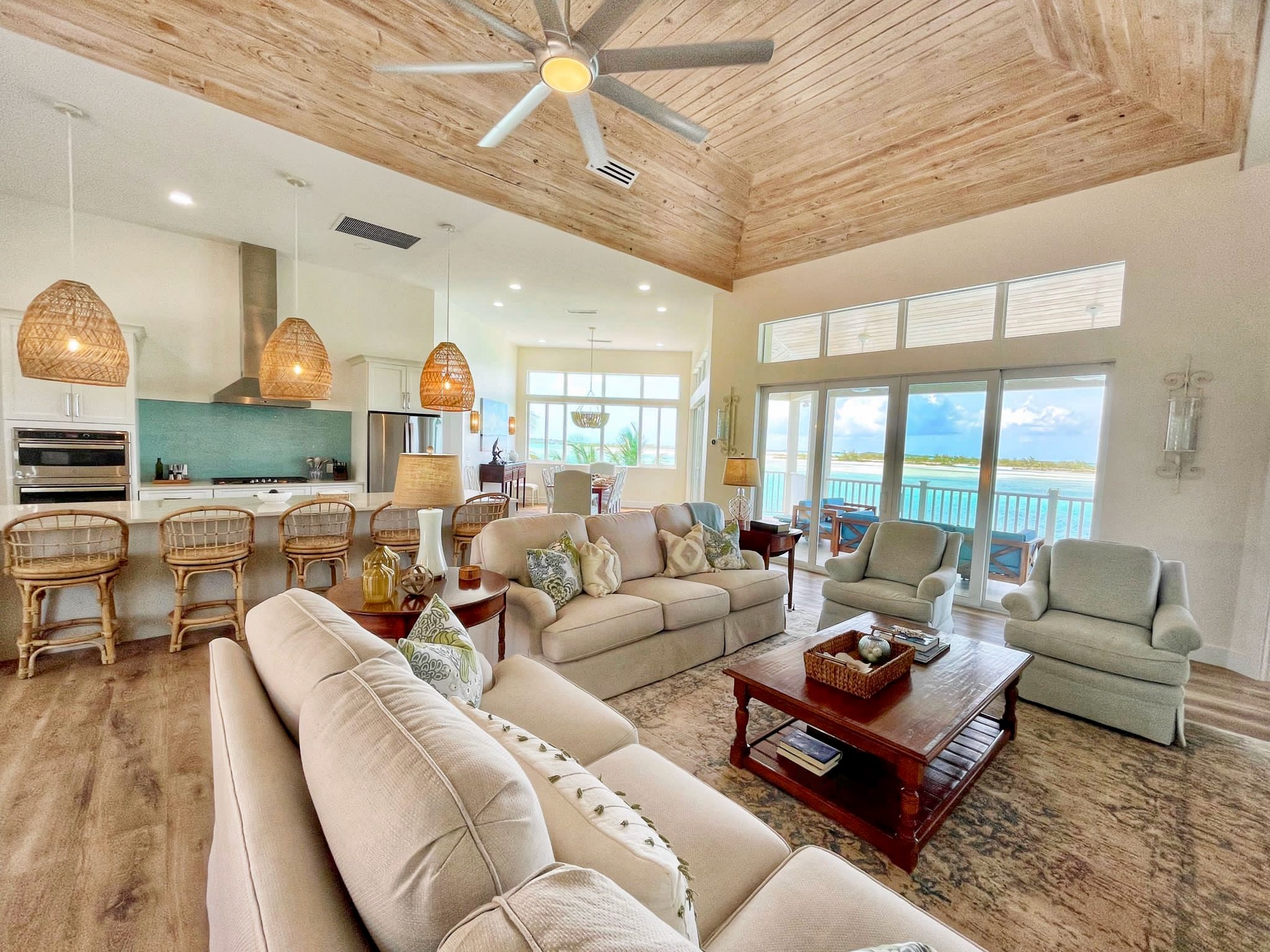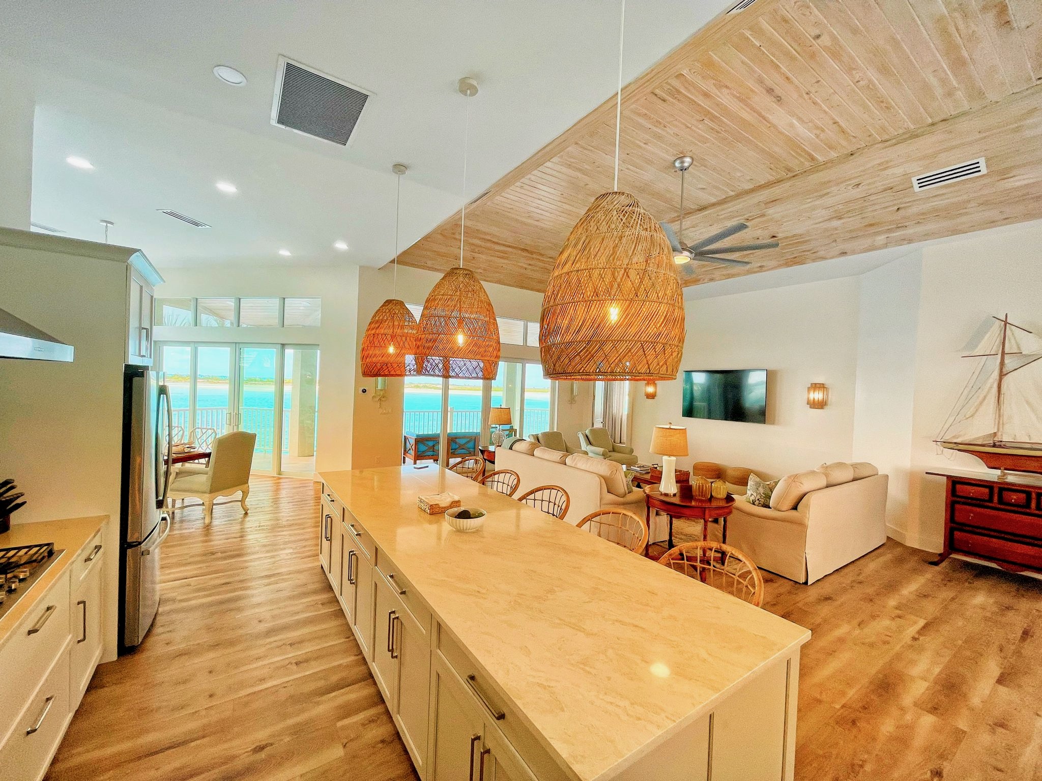 This luxury home offers beautiful views of Moriah Harbour Cay National Park.
