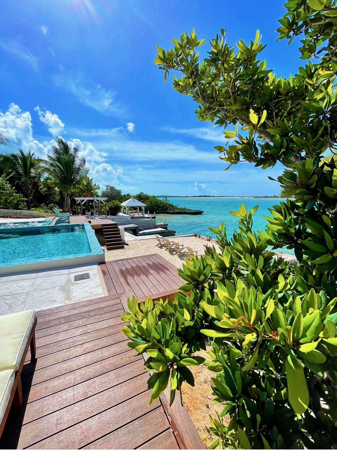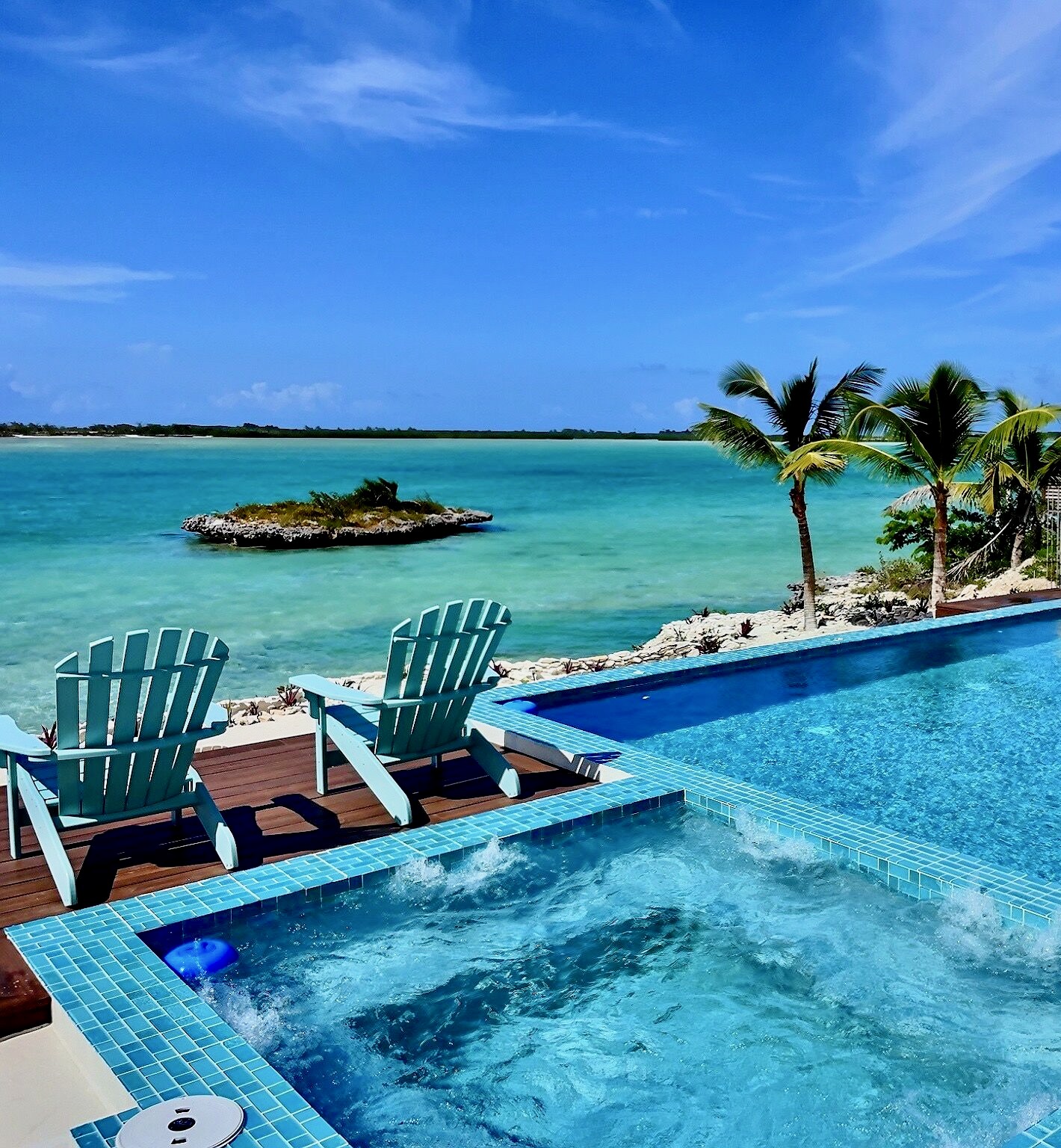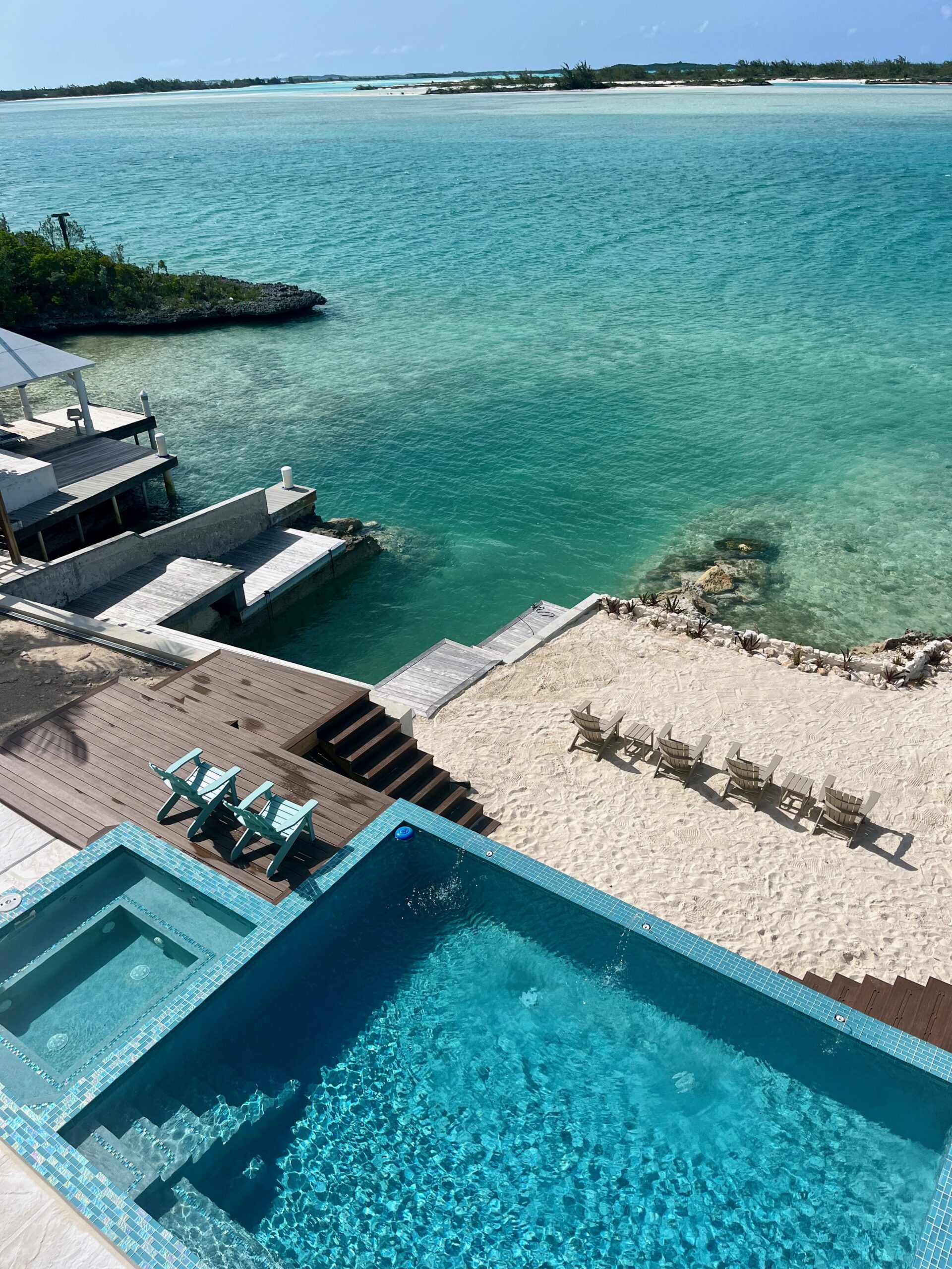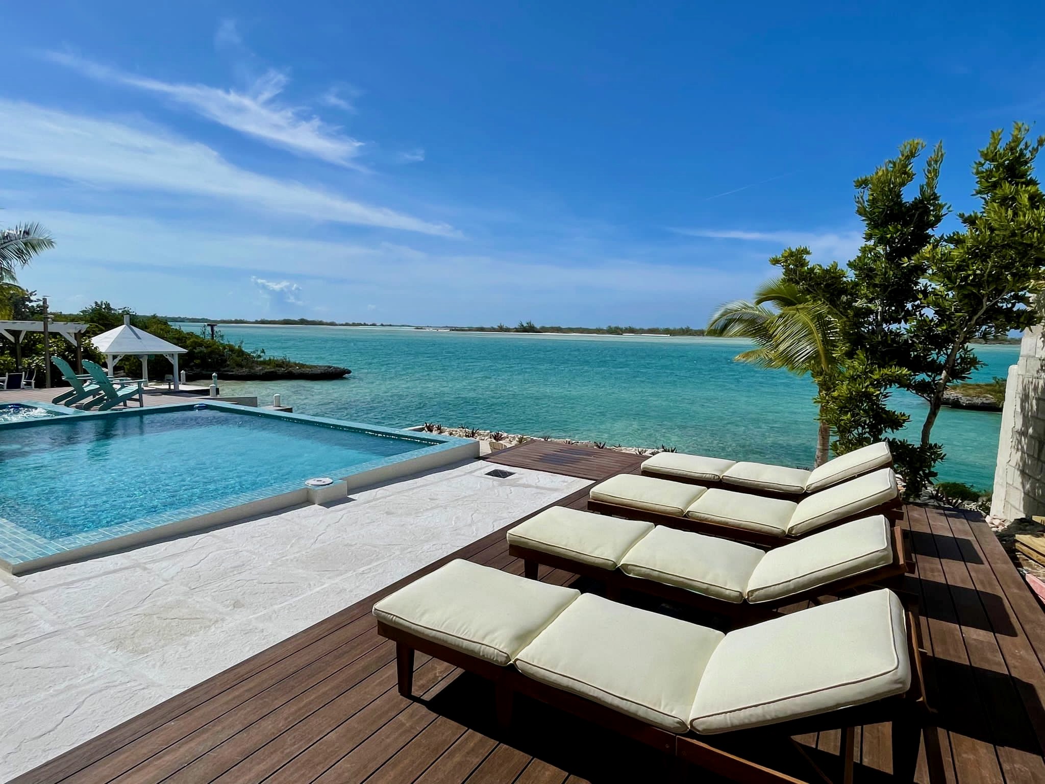 This luxury home offers beautiful views of Moriah Harbour Cay National Park.
