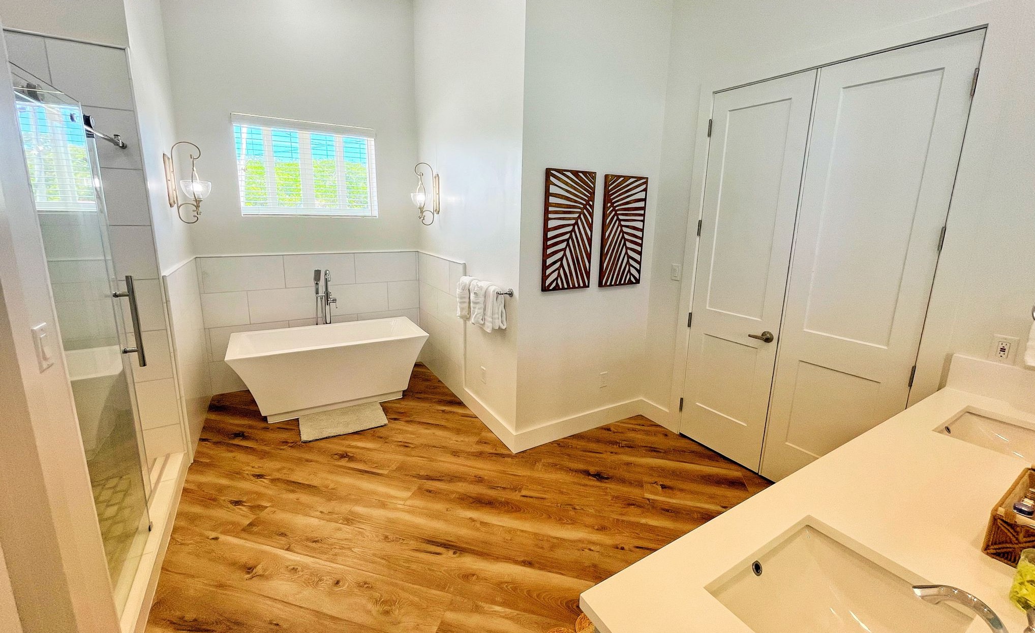 This luxury residence features 5 bedrooms, 4 1/2 baths, includes 2 king master suites, two additional king rooms and a bunk room that sleeps 4. Three rooms offer magnificent oceanside views with spectacular sunrises and sunsets. Accommodates 12 people with two spacious living rooms and balconies on each level. This stunning home has a swimming pool, spa, boat dock and private beach area, with some of the most calm waters in the area and 24/7 beaches.